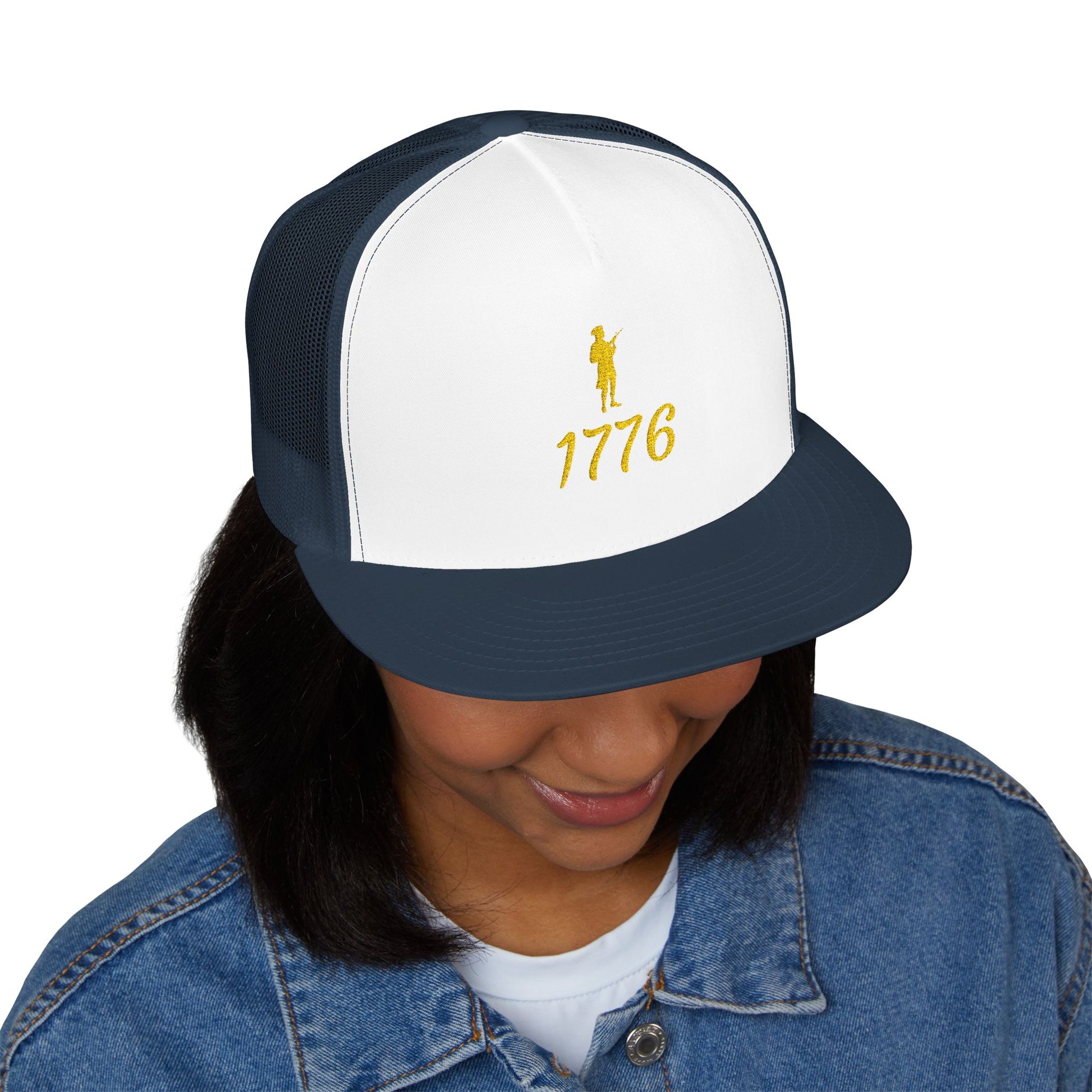 Patriotic 5 Panel Trucker Cap with Embroidered '1776' - Ideal for Independence Day, Festivals, Casual Wear, Outdoor Activities